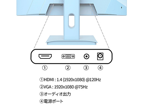 | 商品名 | ゲーミング液晶ディスプレイ 23.8型/1920×1080/HDMI×1、VGA×1/ベイビーブルー/スピーカー有/2年保証 |