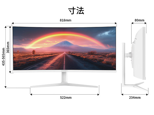 34インチのIPSパネルを搭載し、アスペクト比21:9でUWQHD(3440x1440)解像度に対応した、ホワイトカラーの湾曲ウルトラワイド液晶モニターです。最大輝度300cd/m2。sRGB:99%の広色域に対応。HDR(ハイダイナミックレンジ)は、明るい部分も暗い部分もくっきり表現。最大130mmの範囲で高さ調整を行うことが可能な便利な昇降式スタンドを搭載。また、水平方向のスイーベル、上下の角度調整チルトも可能です。インターフェイスはHDMI、DP、USB-Cを装備。USB-C(最大65W給電)は、モニターへの映像出力とノートPCへの給電が可能。複数の入力を同時に表示する「PBP(Picture by Picture)」に対応、PBPモードでは、最大2つの入力映像を左右同時に表示可能。入力の一つを子画面にて表示する「PIP(Picture in Picture)」も可能です。KVM機能に対応。モニターに接続したキーボード、マウスをノートPCで入力を切り替えた際にもそのまま使用可能です。眼に優しいフリッカーフリー(ちらつき軽減)、ブルーライト軽減モードを搭載します。100x100mmのVESAマウントに対応。3Wx2のスピーカーを搭載しています。本製品には、2年間のメーカー保証が付きます。