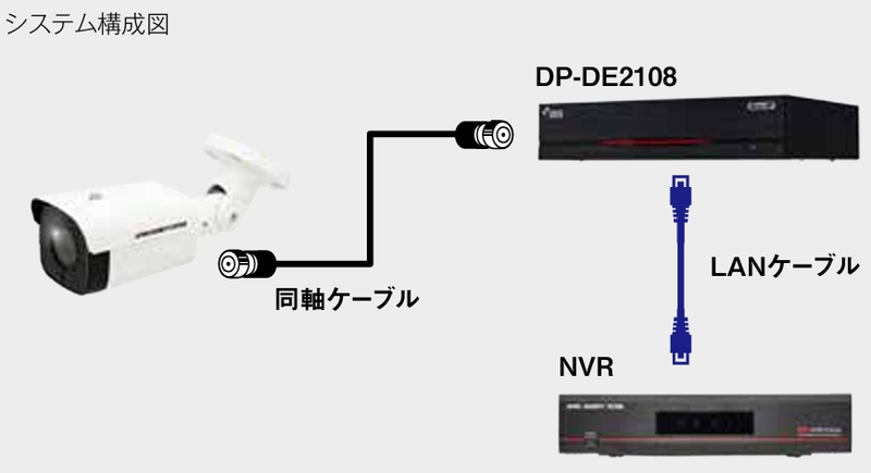 ●アナログHDカメラの映像をIP変換し、ネットワークレコーダで映像表示可能です。