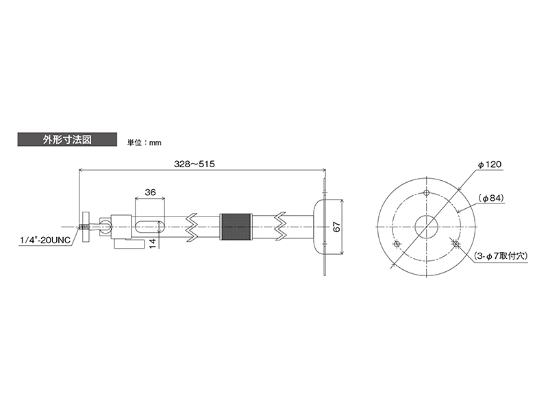 | 商品名 | 屋内カメラ用伸縮天井取付ブラケット(ミドル) |