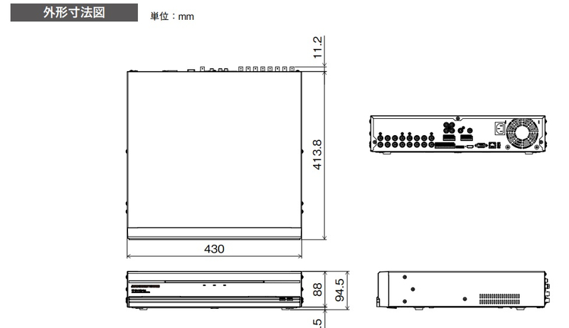 | 保守情報 | 5年保証先出センドバック。5年の間に機器の不具合が確認された場合は先出不具合交換致します。即対応により、故障時から復旧までのタイムラグを削減し、録画が出来ていない期間を短縮します。 |