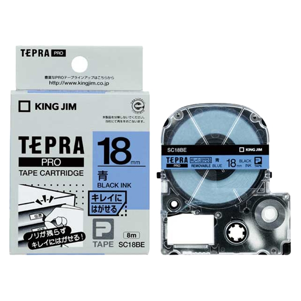 | 商品名 | テプラPROテープカートリッジ キレイにはがせるラベル 青テープ/黒文字 18mm |