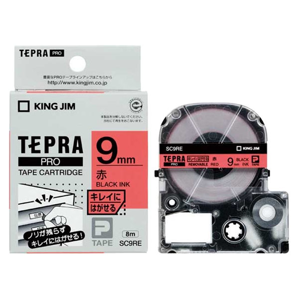 テプラPROテープカートリッジ キレイにはがせるラベル 赤テープ/黒文字 9mm