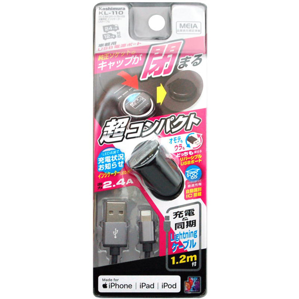 DC-2.4A-リバーシブルUSB 自動判定 インジケーター LNケーブル ブラック