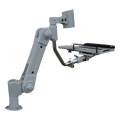 VESA対応スリムキーボード台一体型フランジグロメット式フレキシブルアーム(ホワイト)