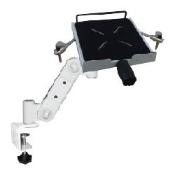 ノートパソコンを左右前後から完全固定するノート用トレイ付き垂直水平稼動アーム。C型クランプ式なので、簡単に取付けができます。逆さまにしても落下することがないので、寝ながらでもノートパソコンが打てます。また、振動する場所や、移動用カートに取り付ける場合に最適。アーム部品の接続部分がプラスティックキャップ式スペーサーに改良されました。摩擦が軽減されることにより、より左右の回転がスムーズになりました。