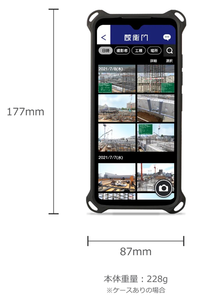 ポケットサイズの撮影職人『蔵衛門Pix』は、シンプルな操作で撮影しリアルタム共有ができます。現場チャットで、工事メンバーとの意思疎通も容易。