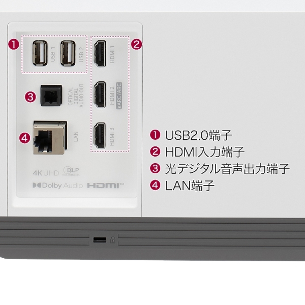 ホームプロジェクター/2500ANSIルーメン/超短焦点/レーザーダイオード/4K/WebOS6.0/最大120インチ/DLP/2000000:1/15ポイントエッジ