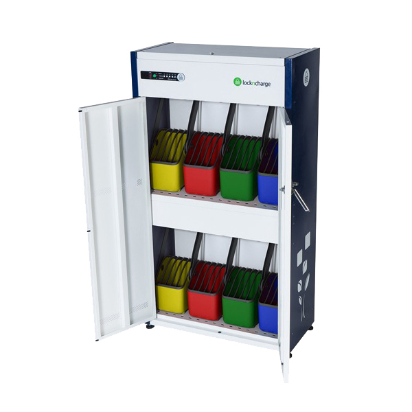 ■iPad、Chromebook、surface、MacBook、タブレット、ノートパソコンなどをバスケットで40台収納できる充電保管庫。■完成品にてお届け。輪番充電器・OAタップ標準装備。■省スペースで40台収納可能。廊下や教室、空いたスペースの有効活用。■バスケットで端末の持ち運び、収納、管理の時間を大幅削減。■スチール溶接構造による高い耐久性と安全性。■ダイヤル式南京錠で鍵の管理不要。■壁面(部品付属)または床面(別売りキット)にて固定が必要。■ケーブルをまとめてすっきりした、簡単なケーブル配線方法。■生涯保証付き(筐体)■組み立て不要の完成品でお届け。