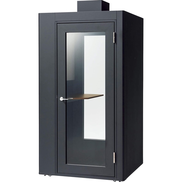 ワーキングブース<デリカブース> 791-35 1人用(天井付) サテンブラック 背面パネル クリア 天板カラー ウォールナット