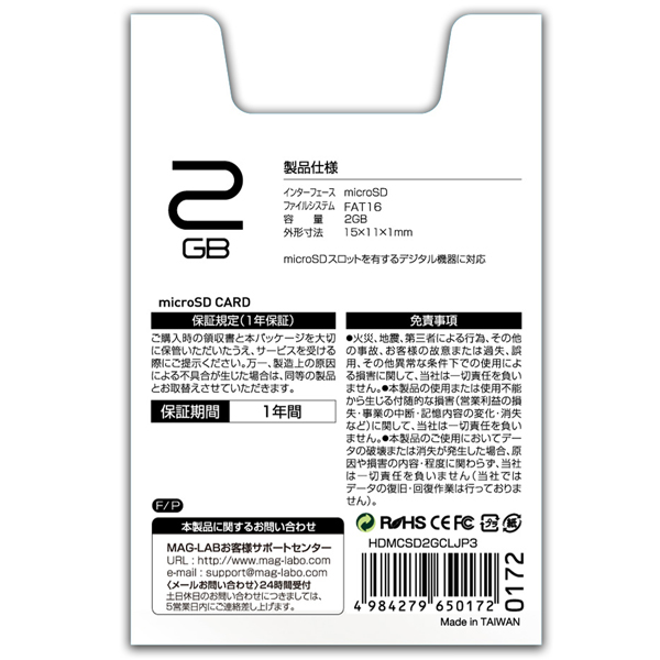 | 商品名 | microSDカード 2GB SD変換アダプタ付 |