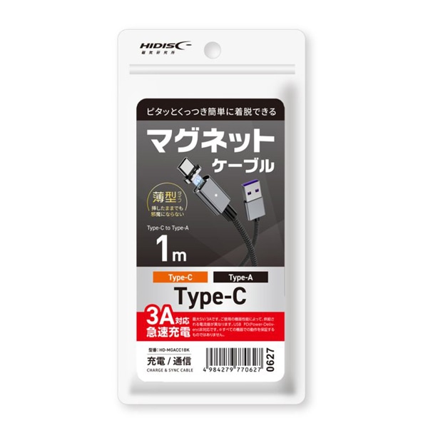 | 商品名 | HIDISC ピタッとくっつき簡単に着脱できる USB Type-A to C マグネットケーブル 1m ブラック |