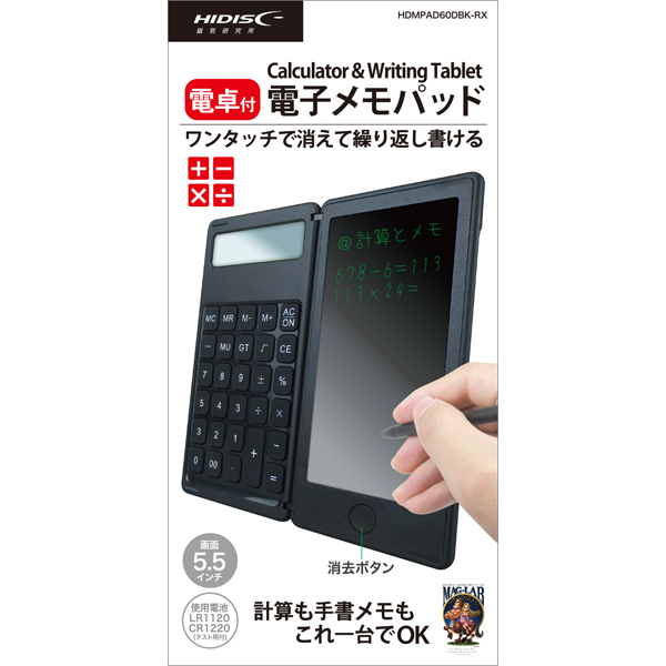 | 商品名 | 電子メモパッド 5.5インチ ブラック 電卓付き |