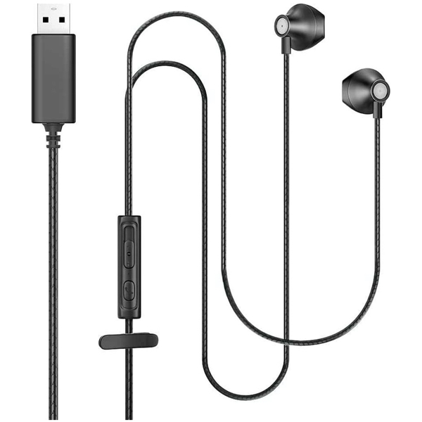 USB接続 マイク付きイヤホン(インイヤータイプ) ブラック