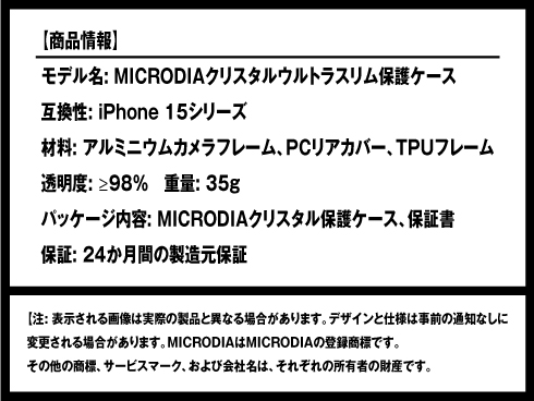 | 商品名 | (iPhone 15)クリスタルウルトラスリム保護ケース クリア |