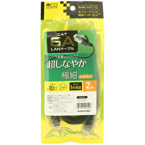 | 商品名 | CAT6A LANケーブル 極細 ブラック 2m |