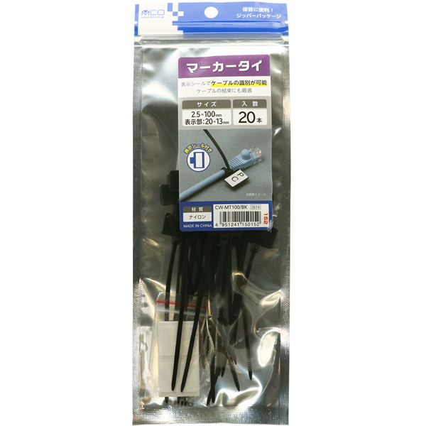 | 商品名 | マーカータイ 2.5×100mm 20本 黒 表示シール付 |