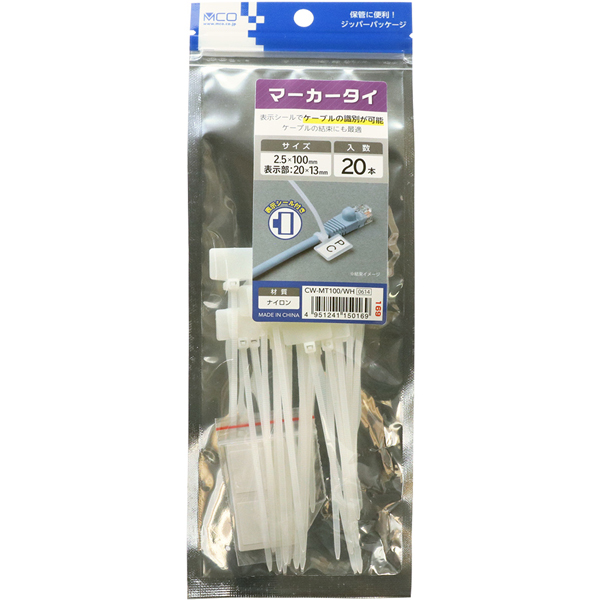 | 商品名 | マーカータイ 2.5×100mm 20本 白 表示シール付 |