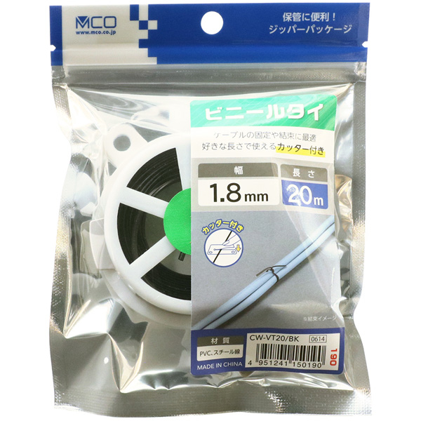 ケーブルの固定や結束に最適。好きな長さで使えるカッター付き■ケーブルに巻いて束ねるビニールタイ■好きな長さにカットできるカッター付き■家庭、オフィスのケーブル類を簡単にまとめる