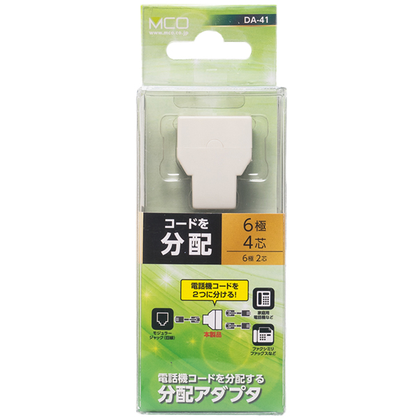 | 商品名 | 6極4芯 電話機コード分配アダプタ ケーブル接続タイプ ホワイト |