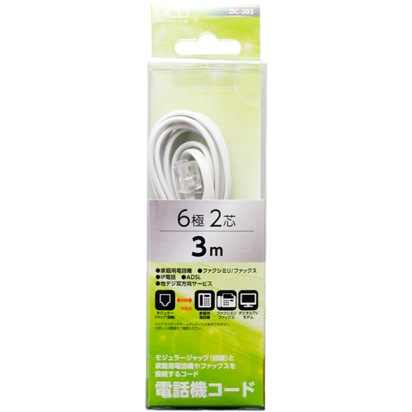 | 商品名 | 6極2芯 電話機コード ホワイト 3m |