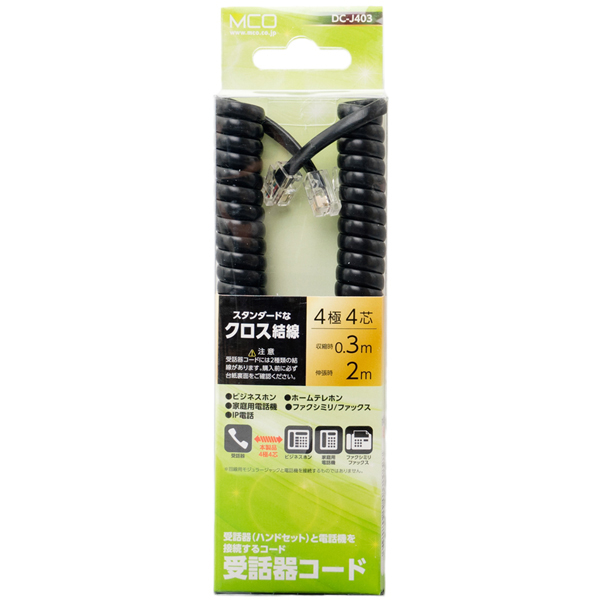 | 商品名 | 4極4芯 受話器用カールコード 0.3m クロス結線 ブラック |
