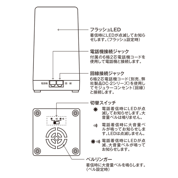 | 商品名 | 電話着信お知らせアダプタ フラッシュリンガー 6極2芯 据え置きタイプ |