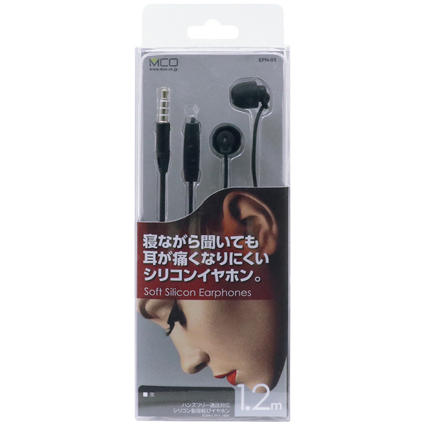 ハンズフリー通話対応 シリコン製寝転びイヤホン 黒