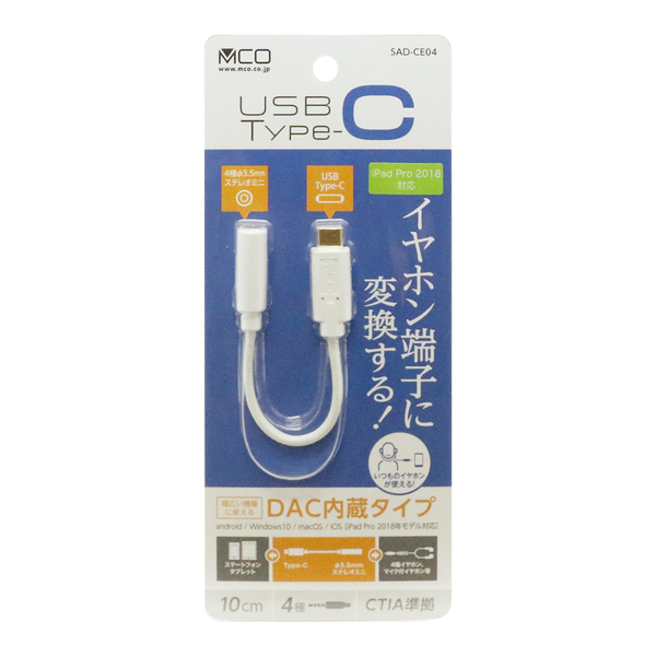 | 商品名 | USB Type-C - イヤホン変換アダプタ DAC内蔵 ホワイト |