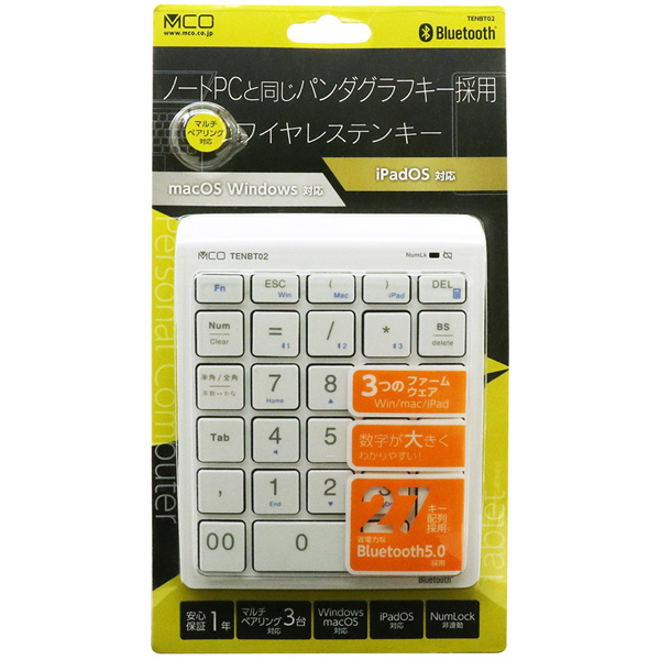 Bluetooth5.0対応 ワイヤレステンキー ホワイト