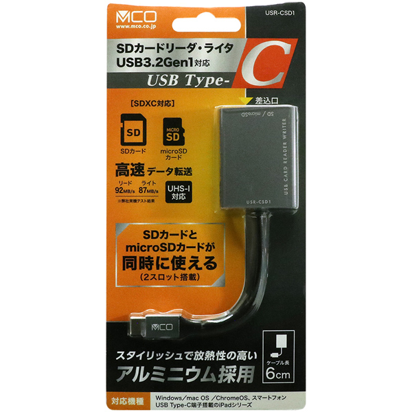 | 商品名 | SDカードリーダ ライタ USB3.2 Gen1 Type-C シルバー |