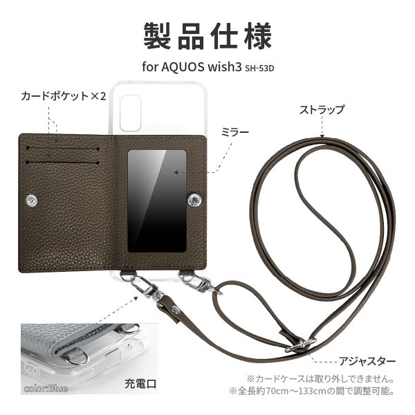 | 商品名 | AQUOS wish3 SH-53D ショルダーストラップ付きレザーケース 「SHOULDER POCKET」 ブラウン |