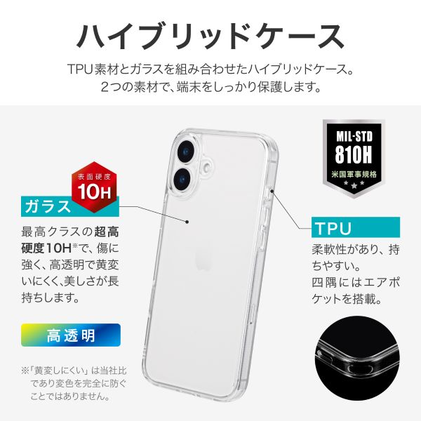 | 商品名 | iPhone 16 Plus 耐傷・ガラスハイブリッドケース 「UTILO Hybrid Glass」 クリア |