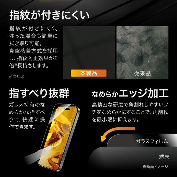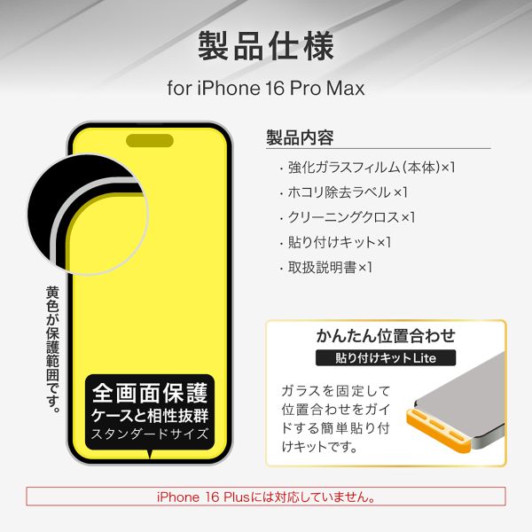 | 商品名 | iPhone 16 Pro Max ガラスフィルム「GLASS PREMIUM FILM Lite」 超透明 |