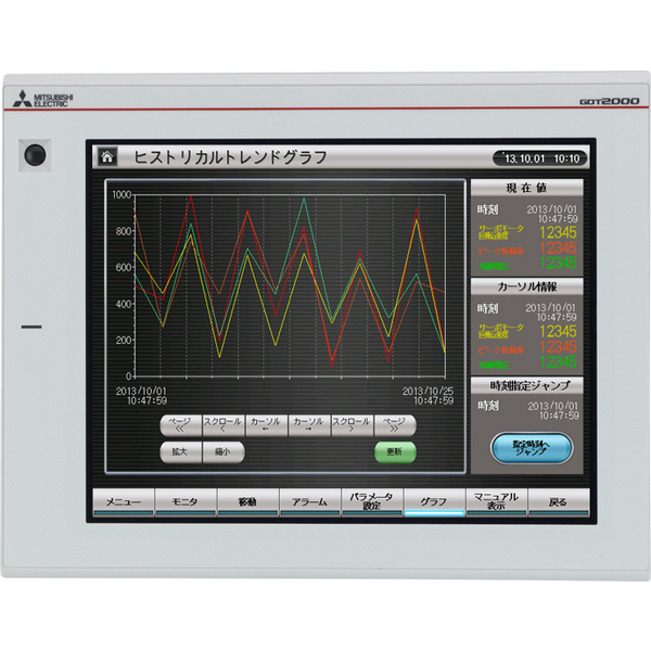●12.1型 ●SVGA ●TFTカラー 65536色 ●パネル色:白 ●電源:AC100~240V ●GOT本体+GT15-J71GF13-T2