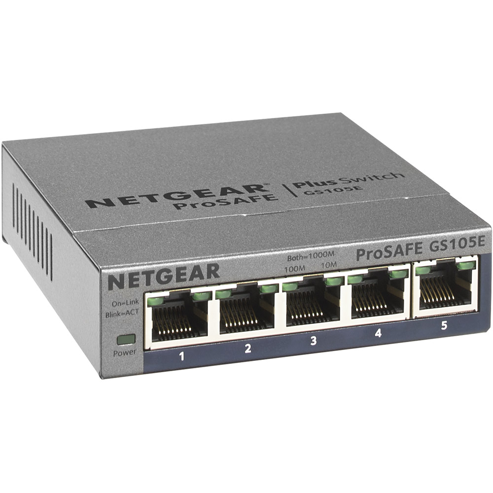 GS105E ギガ5ポート アンマネージプラス・スイッチ。日本語GUIに対応。VLAN機能、QoS、ポートミラーリング、ケーブルテスト機能をサポート。RoHS、WEEE対応など、環境保護に配慮した製品です。IPアドレスも設定できるのでPingによる死活監視も可能です。