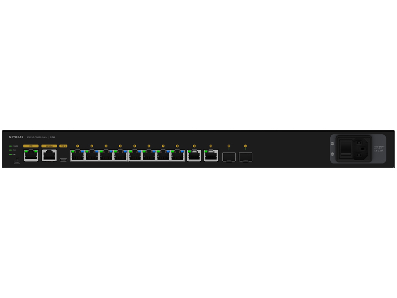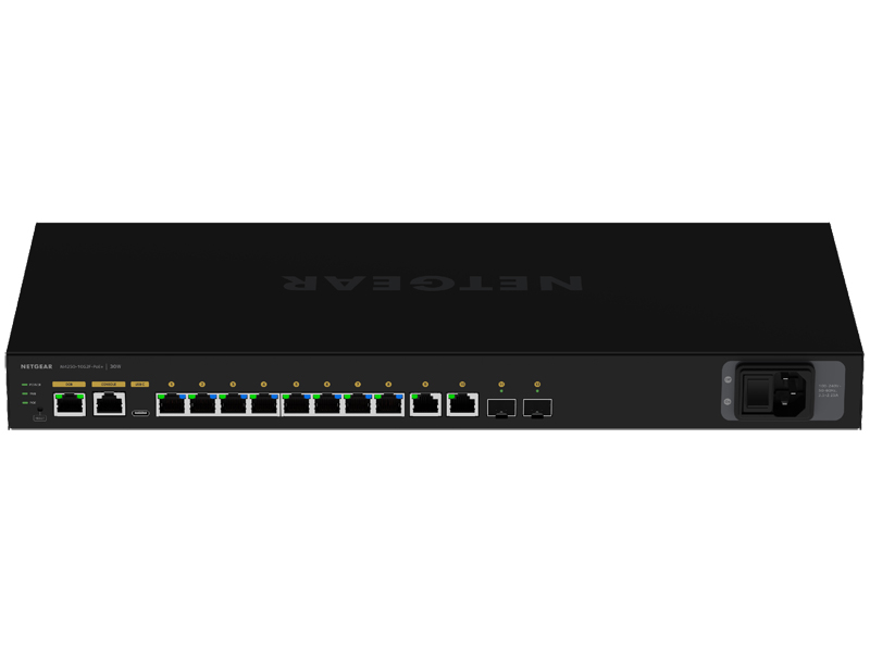 NETGEARはAV over IP (映像や音声をIPネットワーク上で配信する技術) の標準化を推進するSDVoEアライアンスを設立した唯一のスイッチングハブメーカーとして、ProAVシステムに最適化されたスイッチを開発しました。NETGEARのProAV対応スイッチはIPネットワークを利用することで、複雑な配線による導入コストを削減し、設置場所や距離の制限がないシステムの導入を可能にします。M4250-10G2F-PoE+ (GSM4212P) はギガビットポートを10個とSFPスロットを2個搭載、PoE+に対応しており、1ポート当たり30W、8ポート合計で125Wの電力を供給します。またPIMルーティングなど設定が不要なプラグアンドプレイマルチキャスト用のためのIGMP+(IGMPプラス)をサポートし、AV over IPネットワークで共通のL2技術を使用して、システムアーキテクチャを大幅に簡素化します。必要なポート数のモデルを選んで、エンドポイントデバイスを接続すれば、あとはスイッチの電源を入れるだけ簡単にProAV環境を構築できます。AV専用設定画面のほか、通常のIT設定用のWeb管理画面も利用できます。無償保証期間:ライフタイムハードウェア保証(購入後30日以内のユーザー登録必要)