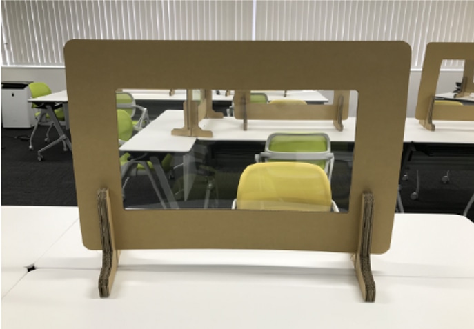 アフターコロナのオフィスでの感染拡大対策に最適!・飛沫感染を防止・アクリル板よりも軽量かつ安価で処分の際も簡単です・フィルム窓付きのため、オフィス内の視界を遮ることもございません・設置時のサイズ(1枚あたり)は、W900、H593、T8となります(単位はミリメートル)。ご注文から納品まで長期間かかるアクリルパーテーションと異なり、本製品は2週間で納品可能です。(在庫状況が急変した場合は、納期が変更になる場合がございますのでご了承ください。)