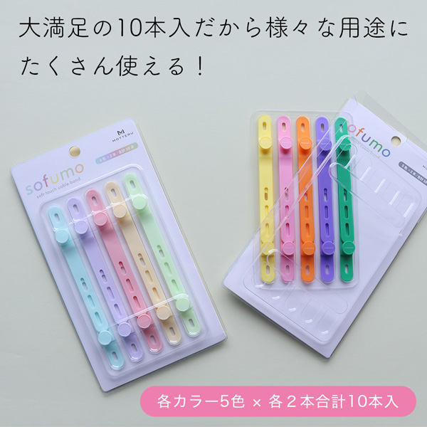 MOTTERU ソフトタッチ ケーブルバンド sofumo シリコン 北欧 10本入り シャーベットカラー 製品サイズ約13(W)mm×10(D)mm×120(H)mm
