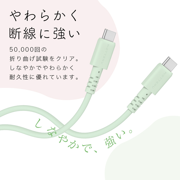 | 商品名 | MOTTERU しなやかで絡まない シリコンケーブル 急速充電 データ転送対応 USB-C to USB-C 2m カラバリ全4色 2年保証 スモーキーブラック |