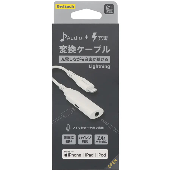 | 商品名 | イヤホン/オーディオ変換アダプター/Lightning/充電用Lightningポート/DAC搭載/高耐久/3.5mm/ホワイト |