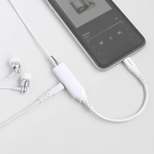 イヤホン/オーディオ変換アダプター/Lightning/充電用Lightningポート/DAC搭載/高耐久/3.5mm/ホワイト