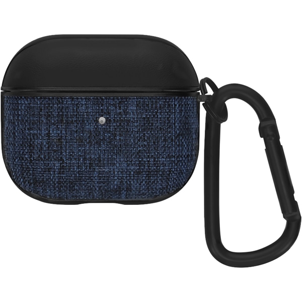 お洒落なファブリックデザインで紛失や落下防止 ファブリック素材のAirPods(第3世代)用ケース ネイビー×ブラック 製品サイズ約63.5(W)×27(D)×51.5(H)mm