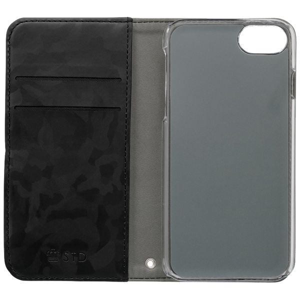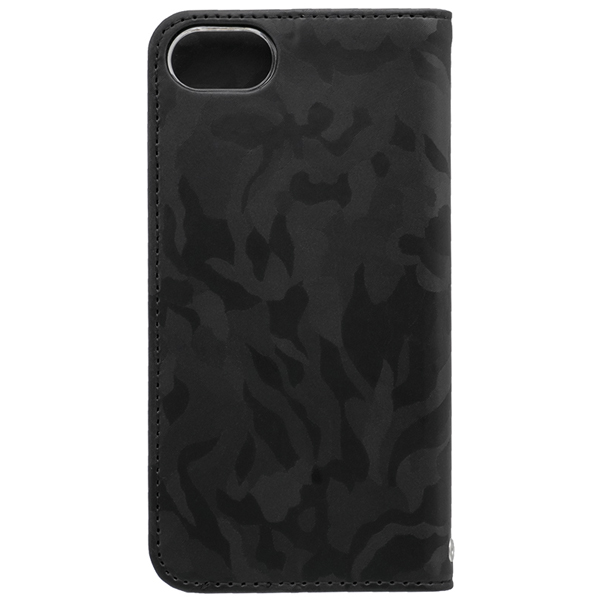 落ち着きのある迷彩柄のシンプルデザイン iPhone 9/8/7/6s/6対応PUレザー手帳型ケース ブラック 製品サイズ約73.5(W)x17(D)x141.5(H)mm