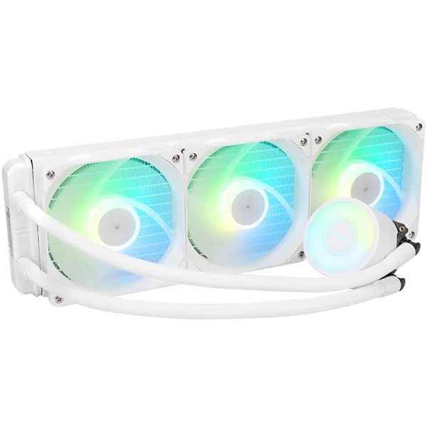 | 商品名 | ホワイトカラー&ARGBで手軽に内部をドレスアップ ARGB対応 360mmラジエータ搭載 簡易水冷CPUクーラー ホワイト 製品サイズ約120(W)×393(D)×27(H)mm |
