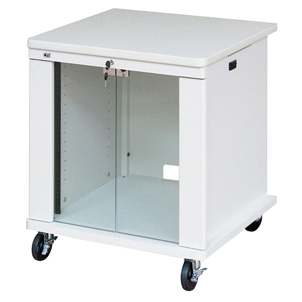 AVキャビネット/EIA11U/100φキャスター/ホワイト/ガラス扉