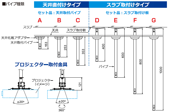 プロジェクターハンガー(ユニバーサル)/パイプBセット/ブラック