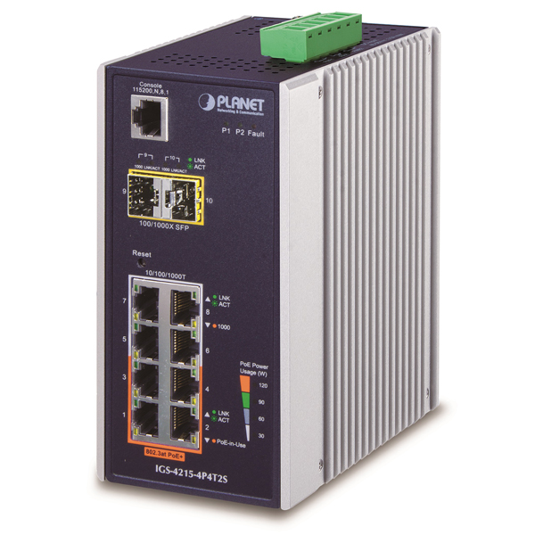 産業用 4ポート ギガ 802.3at PoE + 4ポート ギガ + 2ポート 1000X SFP マネージドスイッチ