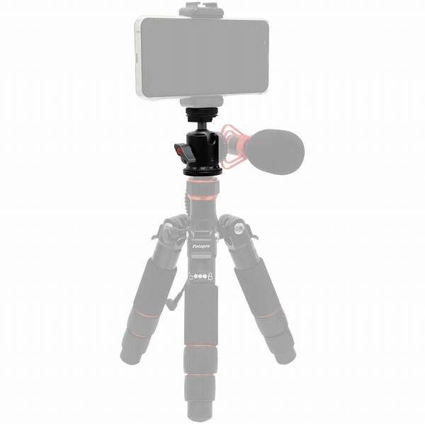 側面にアクセサリーシューがあり、コールドシューのマイクやLEDライトの装着が可能な自由雲台です。カメラ取付部は変換が可能で、撮影アクセサリーの取り付け等に対応します。(カメラ台を反転することで、1/4インチネジからアクセサリーシューに変換が可能です。)ボールヘッドは360度パンが可能な自由雲台となっており、機器の取り回しが角度・方向を自由に行えます。