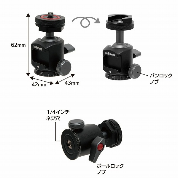 商品名 King K-ASBH アルミ製アクセサリーシューボールヘッド 自由雲台360度 1/4インチネジ